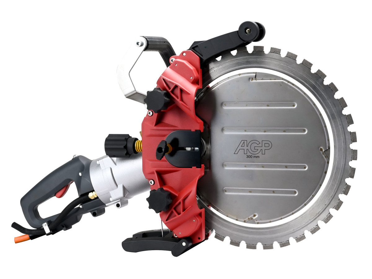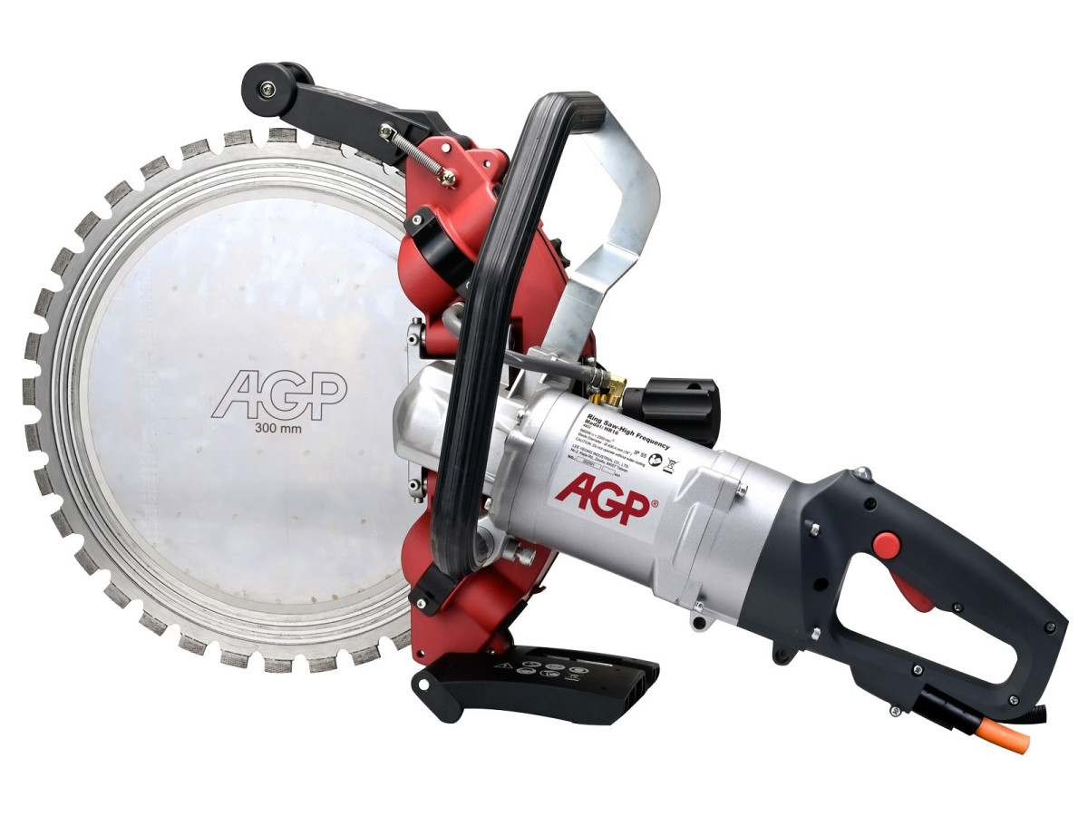 Prstencová pila na beton AGP HR16 je určena pro řezání za mokra. Ochranný kryt kotouče zajišťuje maximální pevnost s velmi nízkou hmotnost, má skvěle propracovanou možnost nastavení a demontáže pro rychlou výměnu kotouče. Flexibilní horní a spodní ochranné kryty proti stříkající vodě zabraňují nadměrnému stříkání. Tato pila se řadí mezi nejlepší profesionální prstencové pily na beton a je všestranná pro širokou škálu aplikací s neuvěřitelnou hloubkou řezu až 300 mm. Pilu je nutné používat s vodou chlazeným převodníkem výkonu (měničem napětí) P9K který dodává pile patřičný 3-fázový výkon a také zajišťuje chlazení vodou samotné pily HR16.